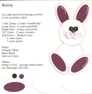 The Bunny was done in a variety of color: Pretty in Pink, Raspberry Ripple, Daffodil Delight, Tempting Turqoise, and Gumball Green. When I use the Bunny, I add a Scalloped Oval in the middle and put my message, i.e. Happy Easter! Turns out really cute....